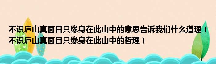不识庐山真面目只缘身在此山中的意思告诉我们什么道理(不识庐山真面目只缘身在此山中的哲理)