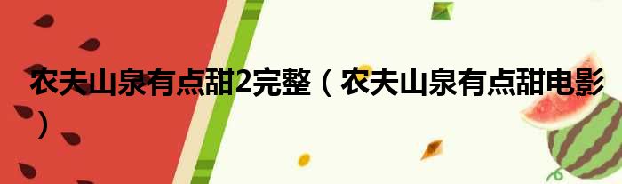 农夫山泉有点甜2完整(农夫山泉有点甜电影)