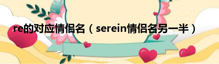 大家好,今天小六子来为大家解答以下的问题,关于re的对应情侣名,serein情侣名另一半这个很多人还不知道,现在让我们一起来看看吧!