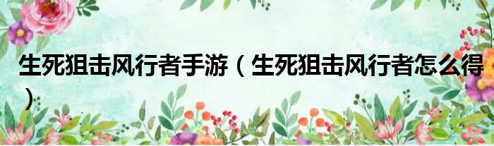 大家好,今天小六子来为大家解答以下的问题,关于生死狙击风行者手游,生死狙击风行者怎么得这个很多人还不知道,现在让我们一起来看看吧!