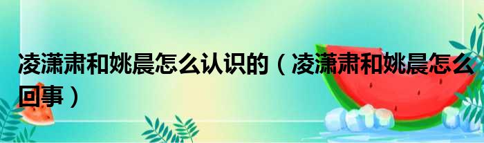 凌潇肃和姚晨怎么认识的(凌潇肃和姚晨怎么回事)
