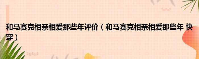 和马赛克相亲相爱那些年评价(和马赛克相亲相爱那些年 快穿)