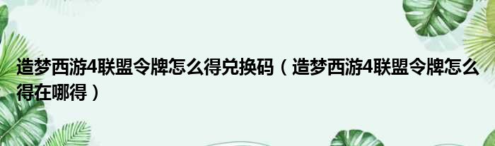 造梦西游4联盟令牌怎么得兑换码(造梦西游4联盟令牌怎么得在哪得)