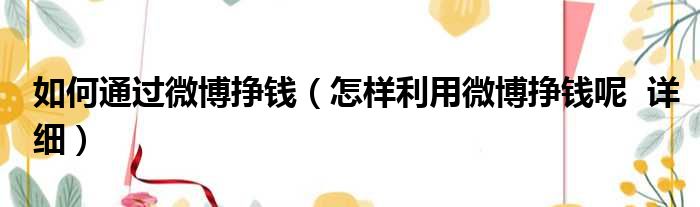 如何通过微博挣钱(怎样利用微博挣钱呢 详细)