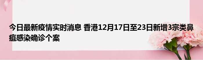 今日最新疫情实时消息 香港12月17日至23日新增3宗类鼻疽感染确诊个案