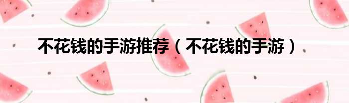 不花钱的手游推荐(不花钱的手游)