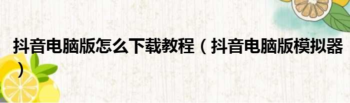 抖音电脑版怎么下载教程(抖音电脑版模拟器)
