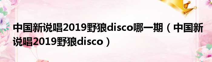中国新说唱2019野狼disco哪一期(中国新说唱2019野狼disco)