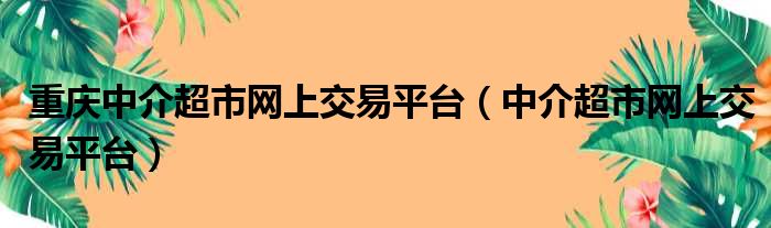 重庆中介超市网上交易平台(中介超市网上交易平台)