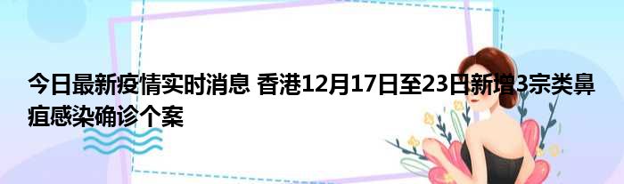 今日最新疫情实时消息 香港12月17日至23日新增3宗类鼻疽感染确诊个案