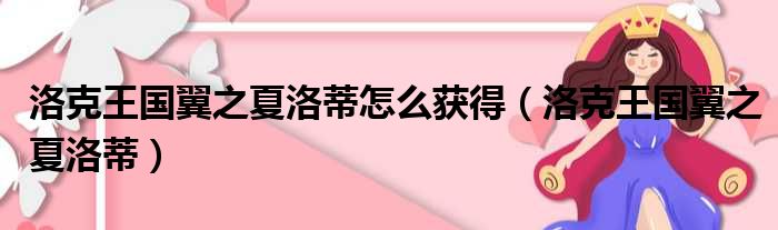 大家好,今天小六子来为大家解答以下的问题,关于洛克王国翼之夏洛蒂怎么获得,洛克王国翼之夏洛蒂这个很多人还不知道,现在让我们一起来看看吧!