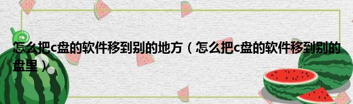 怎么把c盘的软件移到别的地方(怎么把c盘的软件移到别的盘里)