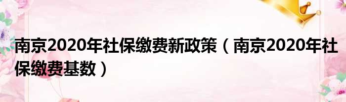 南京2020年社保缴费新政策(南京2020年社保缴费基数)
