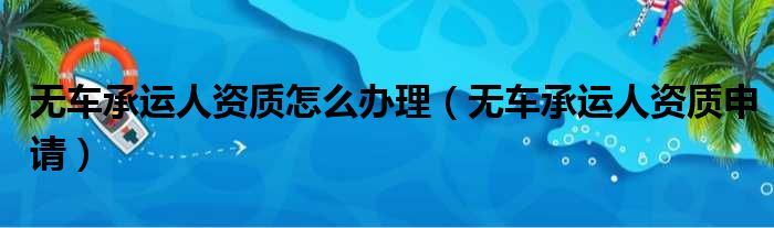无车承运人资质怎么办理(无车承运人资质申请)