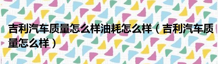 吉利汽车质量怎么样油耗怎么样(吉利汽车质量怎么样)