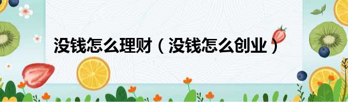 没钱怎么理财(没钱怎么创业)