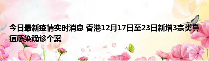 今日最新疫情实时消息 香港12月17日至23日新增3宗类鼻疽感染确诊个案
