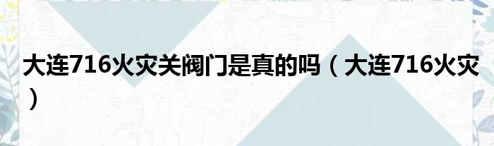 导读 大家好,今天小六子来为大家解答以下的问题,关于大连716火灾关阀门是真的吗,大连716火灾这个很多人还不知道,现在让我们一起来看看吧!1、
