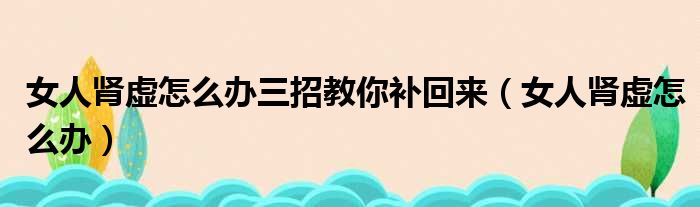 女人肾虚怎么办三招教你补回来(女人肾虚怎么办)