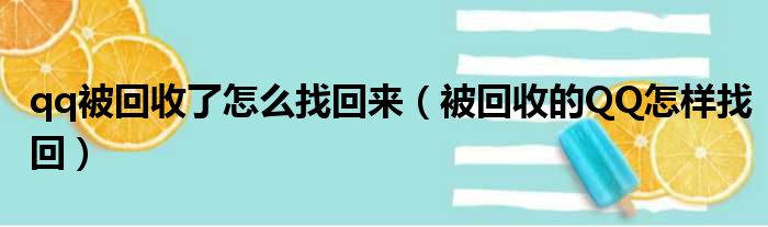 qq被回收了怎么找回来(被回收的QQ怎样找回)