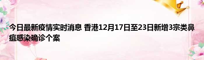 今日最新疫情实时消息 香港12月17日至23日新增3宗类鼻疽感染确诊个案