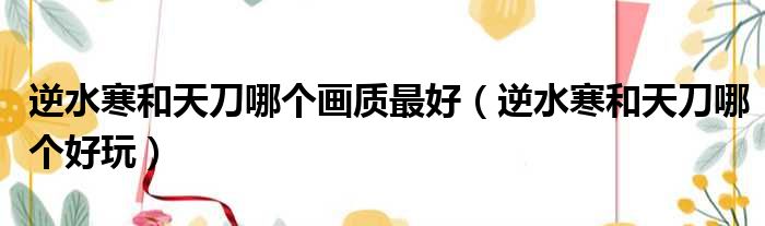 逆水寒和天刀哪个画质最好(逆水寒和天刀哪个好玩)