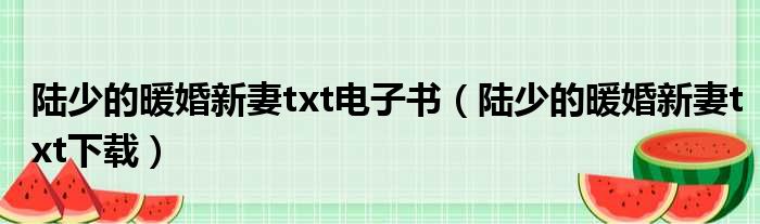 陆少的暖婚新妻txt电子书(陆少的暖婚新妻txt下载)