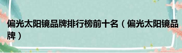 偏光太阳镜品牌排行榜前十名(偏光太阳镜品牌)