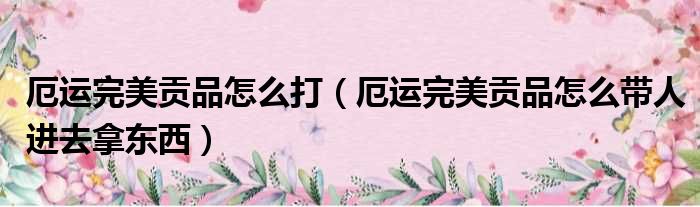 厄运完美贡品怎么打(厄运完美贡品怎么带人进去拿东西)