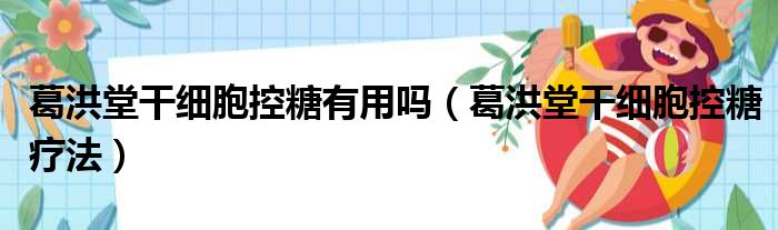 导读 大家好,今天小六子来为大家解答以下的问题,关于葛洪堂干细胞控糖有用吗,葛洪堂干细胞控糖疗法这个很多人还不知道,现在让我们一起来看看