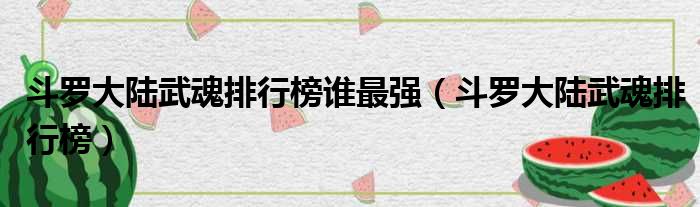 斗罗大陆武魂排行榜谁最强(斗罗大陆武魂排行榜)