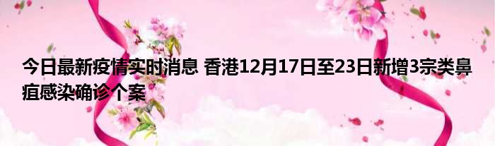 今日最新疫情实时消息 香港12月17日至23日新增3宗类鼻疽感染确诊个案