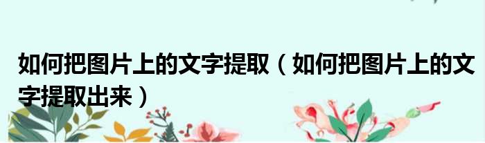 如何把图片上的文字提取(如何把图片上的文字提取出来)