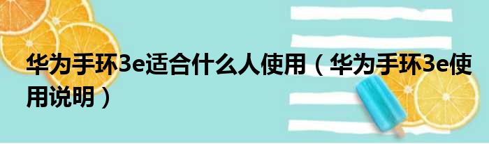 华为手环3e适合什么人使用(华为手环3e使用说明)