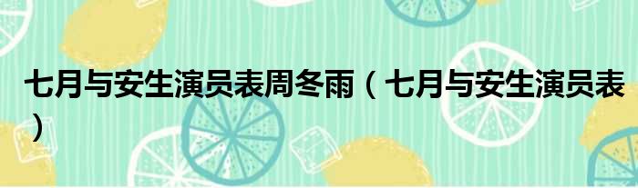 导读 大家好,今天小六子来为大家解答以下的问题,关于七月与安生演员表周冬雨,七月与安生演员表这个很多人还不知道,现在让我们一起来看看吧!1