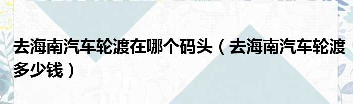 去海南汽车轮渡在哪个码头(去海南汽车轮渡多少钱)