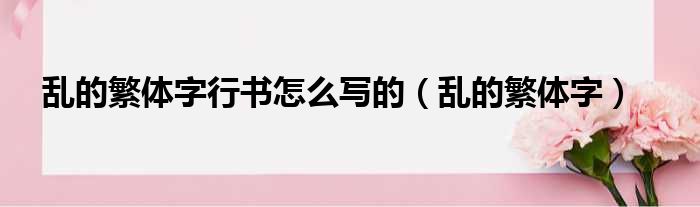 导读 大家好,今天小六子来为大家解答以下的问题,关于乱的繁体字行书怎么写的,乱的繁体字这个很多人还不知道,现在让我们一起来看看吧!1、乱的
