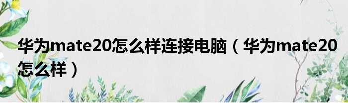 华为mate20怎么样连接电脑(华为mate20怎么样)
