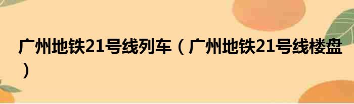 广州地铁21号线列车(广州地铁21号线楼盘)