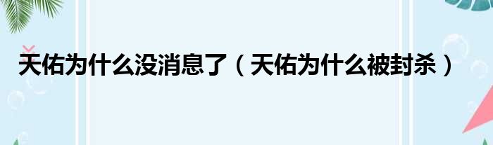 天佑为什么没消息了(天佑为什么被封杀)