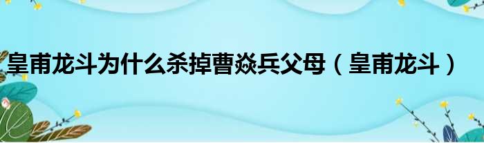 皇甫龙斗为什么杀掉曹焱兵父母(皇甫龙斗)