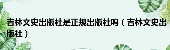 吉林文史出版社是正规出版社吗(吉林文史出版社)