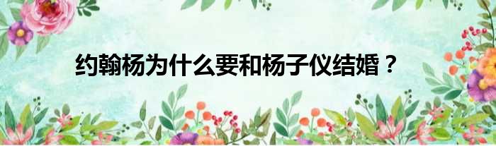 导读 大家好,今天小六子来为大家解答以下的问题,关于约翰杨为什么要和杨子仪结婚?这个很多人还不知道,现在让我们一起来看看吧!1、婚姻是两个