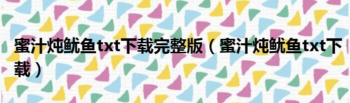 蜜汁炖鱿鱼txt下载完整版(蜜汁炖鱿鱼txt下载)