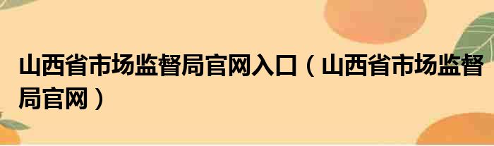 山西省市场监督局官网入口(山西省市场监督局官网)