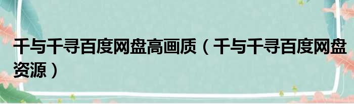 千与千寻百度网盘高画质(千与千寻百度网盘资源)