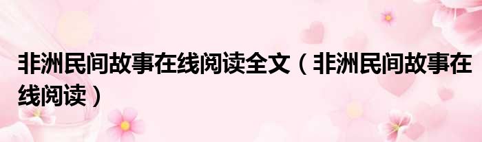 非洲民间故事在线阅读全文(非洲民间故事在线阅读)