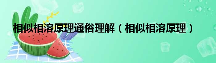 导读 大家好,今天小六子来为大家解答以下的问题,关于相似相溶原理通俗理解,相似相溶原理这个很多人还不知道,现在让我们一起来看看吧!1、“相