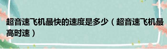 导读 大家好,今天小六子来为大家解答以下的问题,关于超音速飞机最快的速度是多少,超音速飞机最高时速这个很多人还不知道,现在让我们一起来看