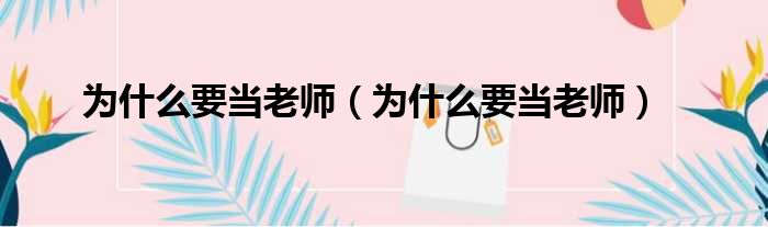大家好,今天小六子来为大家解答以下的问题,关于为什么要当老师,为什么要当老师这个很多人还不知道,现在让我们一起来看看吧!